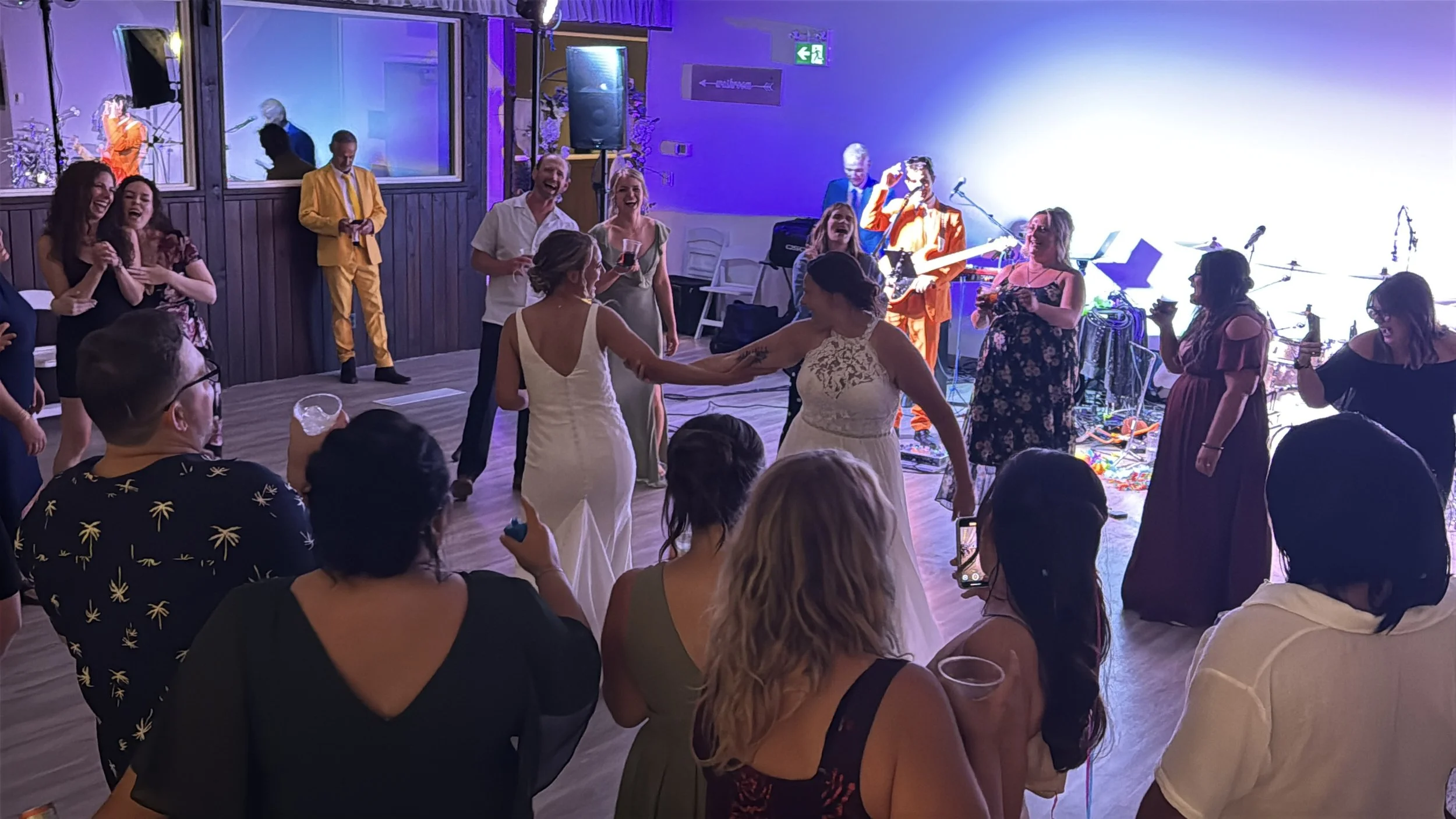 As the evening continued, the celebration naturally shifted from heartfelt to joyful. One standout moment came when a song from the “do not play” list — Shoop — made an unexpected appearance. In a playful twist, Lyndsey took to the microphone and delivered a karaoke-style performance that had the room cheering and laughing. The Band, Men in Cheap Suits, had the dance floor packed all night long.